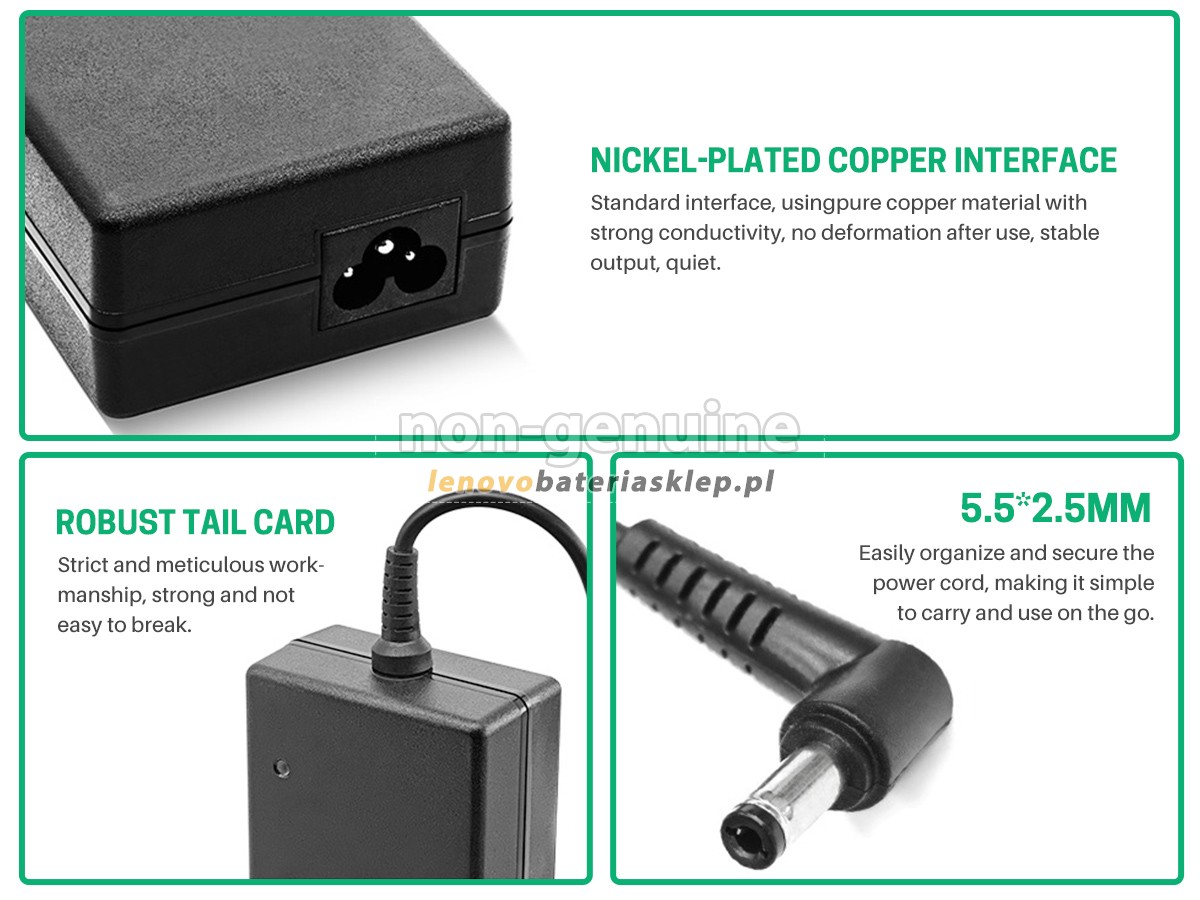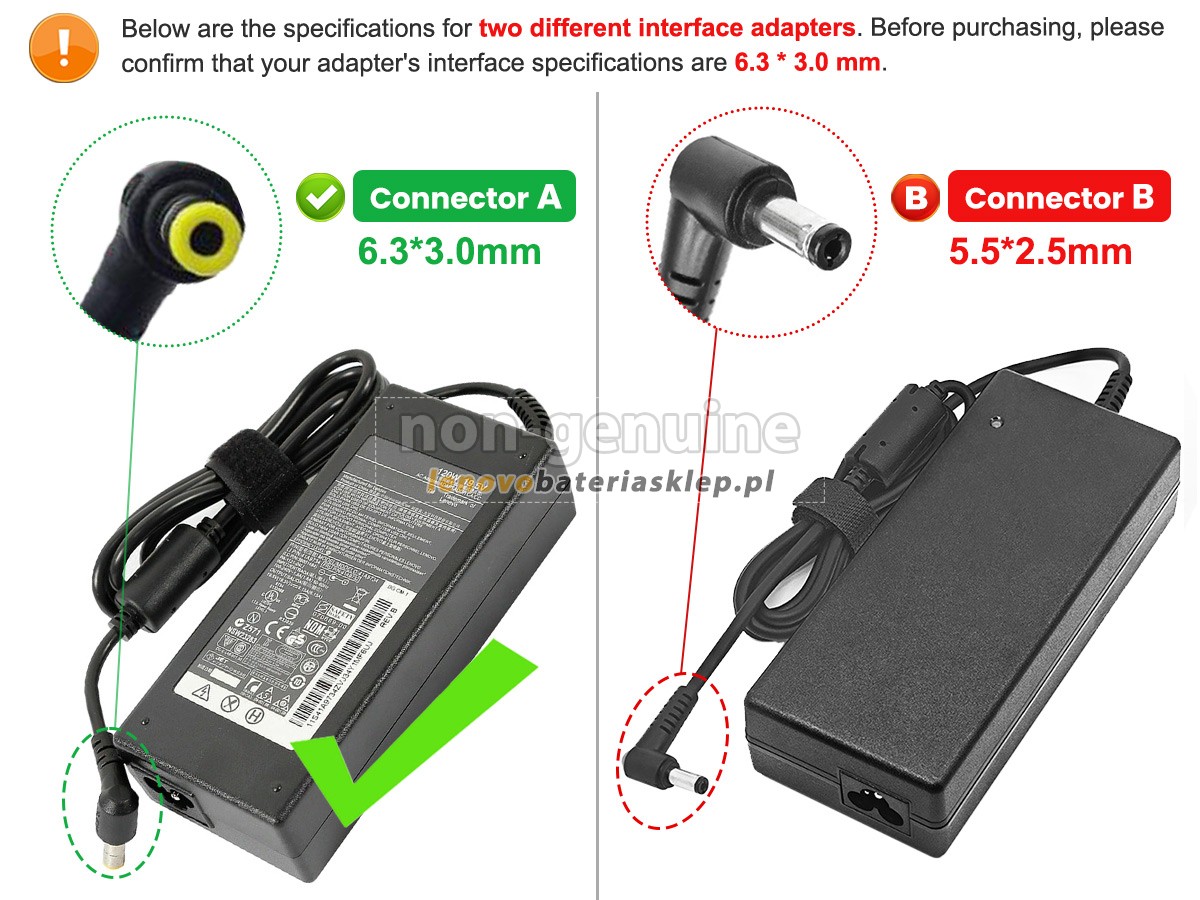Adapter do Lenovo ADP-120LHB sprzedawana przez lenovobateriasklep.pl jest nieoryginalnym zamiennikiem. Wspominamy markę i model oryginalnego producenta tylko po to, aby pokazać kompatybilność naszej adapter zamiennej, aby klienci mogli prawidłowo kupić potrzebne zamienniki.