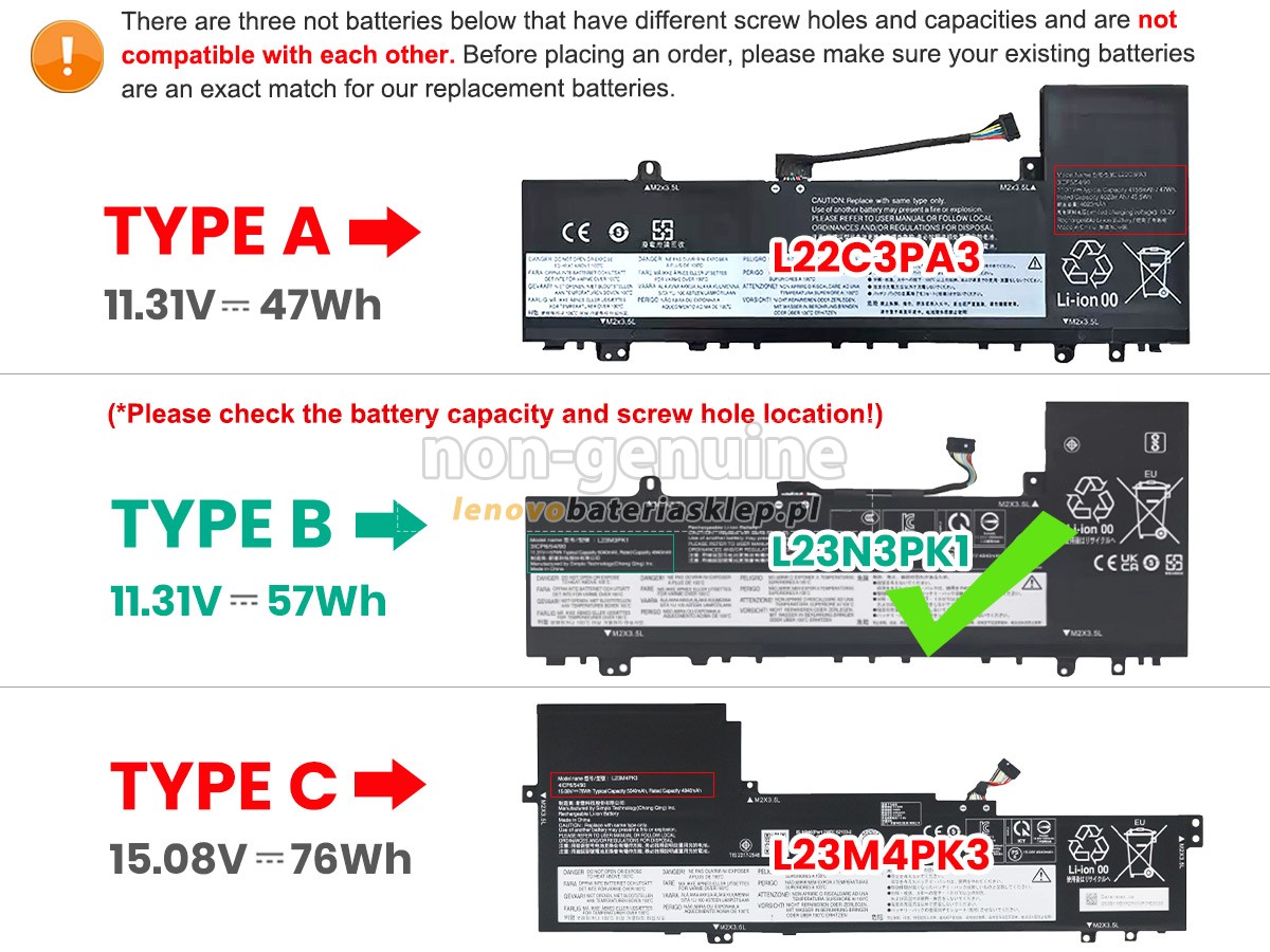 Większość klientów wybiera nieoryginalne baterie ze względu na fakt, że zapewniają one taki sam poziom wydajności i jakości jak baterie oryginalne przy jednocześnie bardzo niskiej cenie, należy jednak pamiętać, że jakość nieoryginalnych baterii na rynku jest bardzo różna, baterie o niezwykle niskiej cenie mogą doprowadzić do zwarcia i spontanicznego zapłonu w laptopie. Firma LenovoBateriaSklep.pl zapewnia, że nasze baterie spełniają standardy bezpieczeństwa mające zastosowanie do oryginalnych baterii i są zgodne z zaleceniami producenta, co daje gwarancję wydajności i kompatybilności.